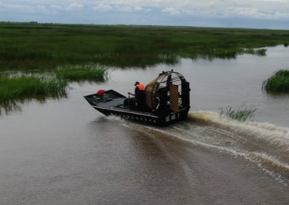 氣動船(Airboat)使用用途非常廣泛,可以在沼澤、濕地、冰面、草地、雪地和淺水水域等環境暢通無阻的航行,在歐美、加拿